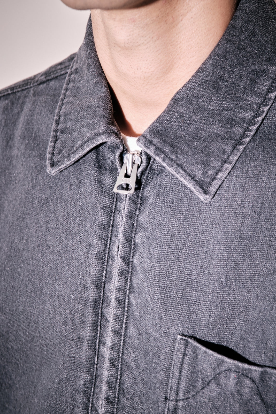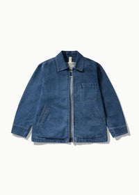 Cut at a shorter length, this jacket is made from an organic heavy cotton denim which has been washed for a soft feel to the touch with adjustable straps at bottom hem for increased versatility. Featuring narrow welt side pockets, a chest pocket with a zip closure and a regular collar. Functional two-way zipper at front and an inside pocket.