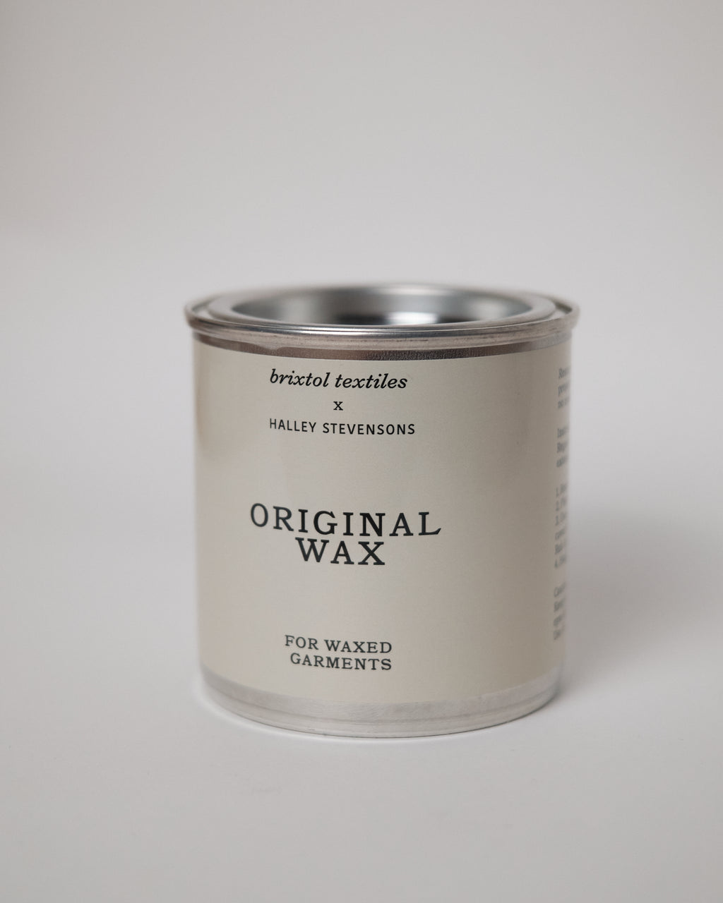 Halley Stevensons Original Wax Reproofing Wax 200ml. Traditional wax filled tin for reproofing classic wax products. Restores original water resistant properties to garments and equipment, no need to tumble dry or iron. 100% PFAS-free. Instruction: Regular reproofing is recommended to extend item life. Remove any dirt from fabric using clean water. Place tin in warm water to soften wax. Use a cotton cloth to apply wax, making sure to cover difficult areas like folds, creases and pockets. Rub in well. Hang the garment overnight in a warm place. Caution Keep out of reach of children. Avoid contact with eyes and prolonged contact with skin. Use in a well ventilated area. Do not use warm water, detergents or soap. Do not machine wash or dry clean your waxed garment.