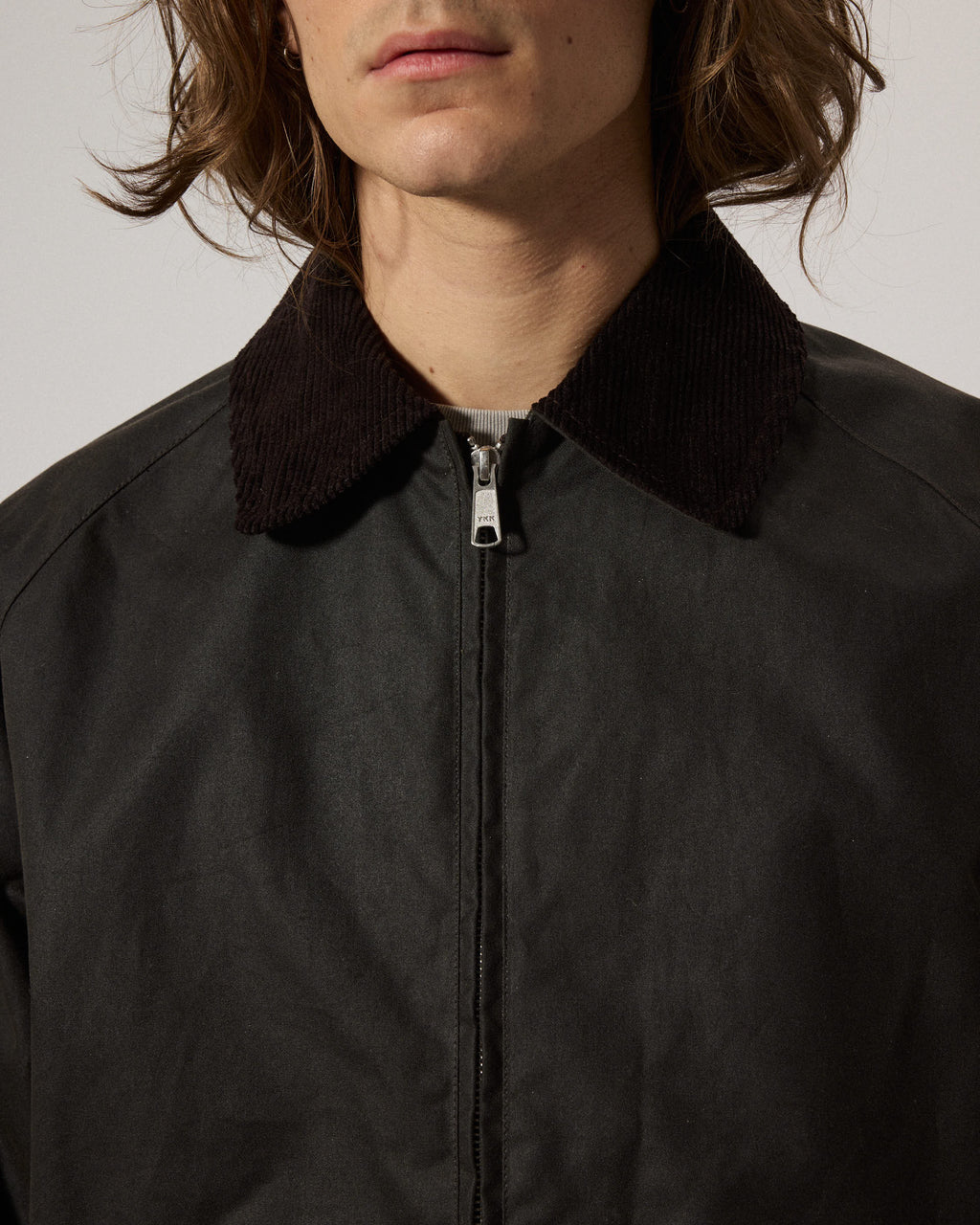Cut at a shorter length, Carter Wax is manufactured in the city of Birminghamn, UK, crafted from a durable high quality organic cotton and treated with a water resistant wax in Dundee, Scotland. The jacket is featured with a split kangaroo front pocket and an inside pocket. The collar and inside of the cuff are lined with a rich corduroy quality. For a long lasting garment, periodically rewax the shell fabric.