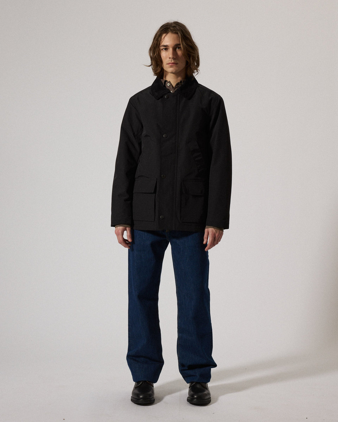 Curtis Nylon is a mid-length jacket both waterproof and insulated in a regular fit made from a recycled nylon quality certified by the Global Recycle Standard. Features a corduroy collar, a front zip closure with a protective placket secured by snap buttons, two front flap pockets and two slanted welt pockets to keep your hands warm.
