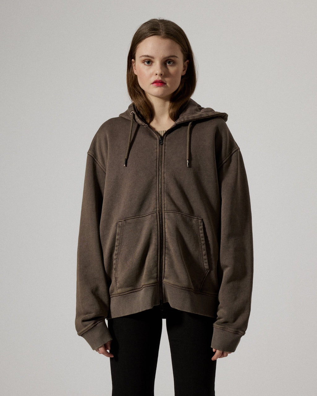 Hoodie with a two-way zip closure and pull cord at hood. Loose fit with a split kangaroo pocket, crafted in a soft sweatshirt jersey made from organic cotton and stonewashed for a vintage look. Small monogram embroidery at the left bottom hem.