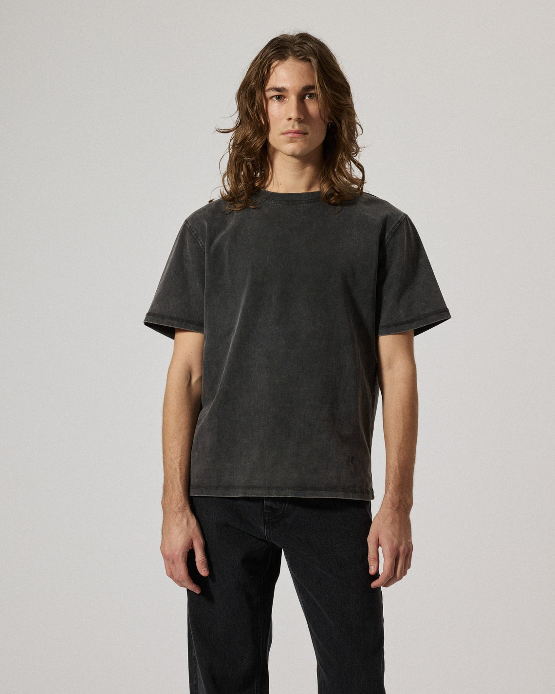 T-shirt in a classic round neckline with a ribbed collar. Regular fit with a slightly shorter length, crafted in a soft midweight jersey made from organic cotton and stonewashed for a vintage look. Small monogram embroidery at the left bottom hem.