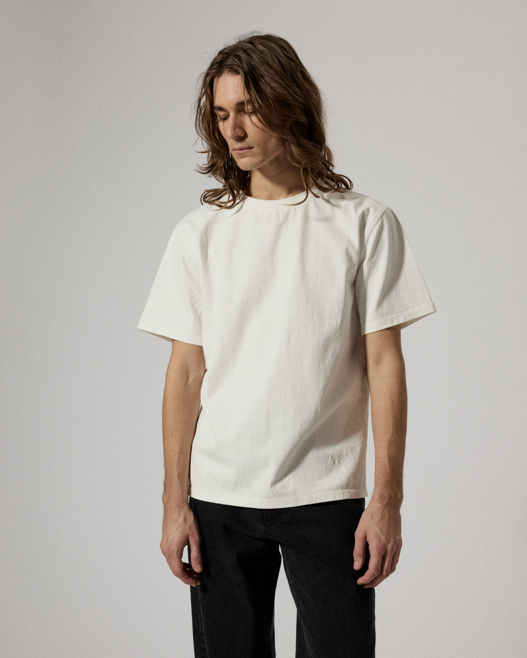 T-shirt in a classic round neckline with a ribbed collar. Regular fit with a slightly shorter length, crafted in a soft midweight jersey made from organic cotton and stonewashed for a vintage look. Small monogram embroidery at the left bottom hem.
